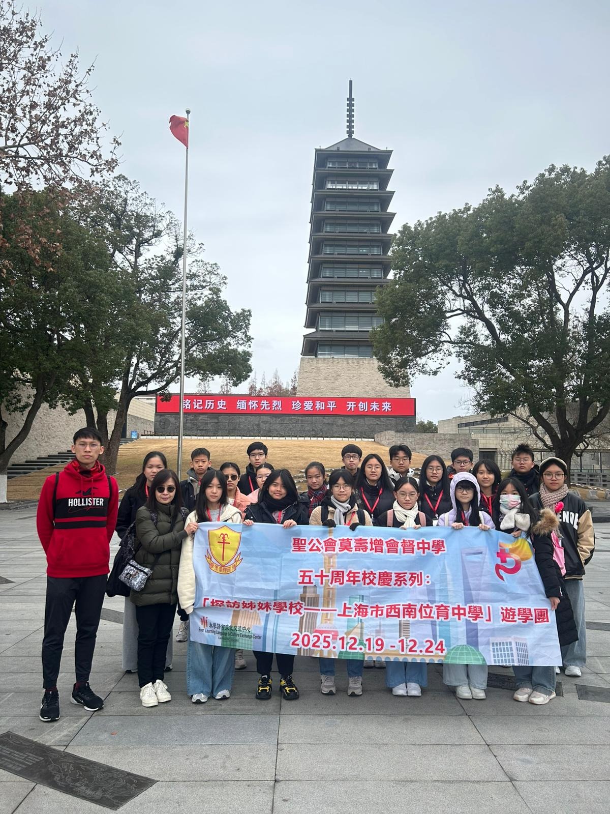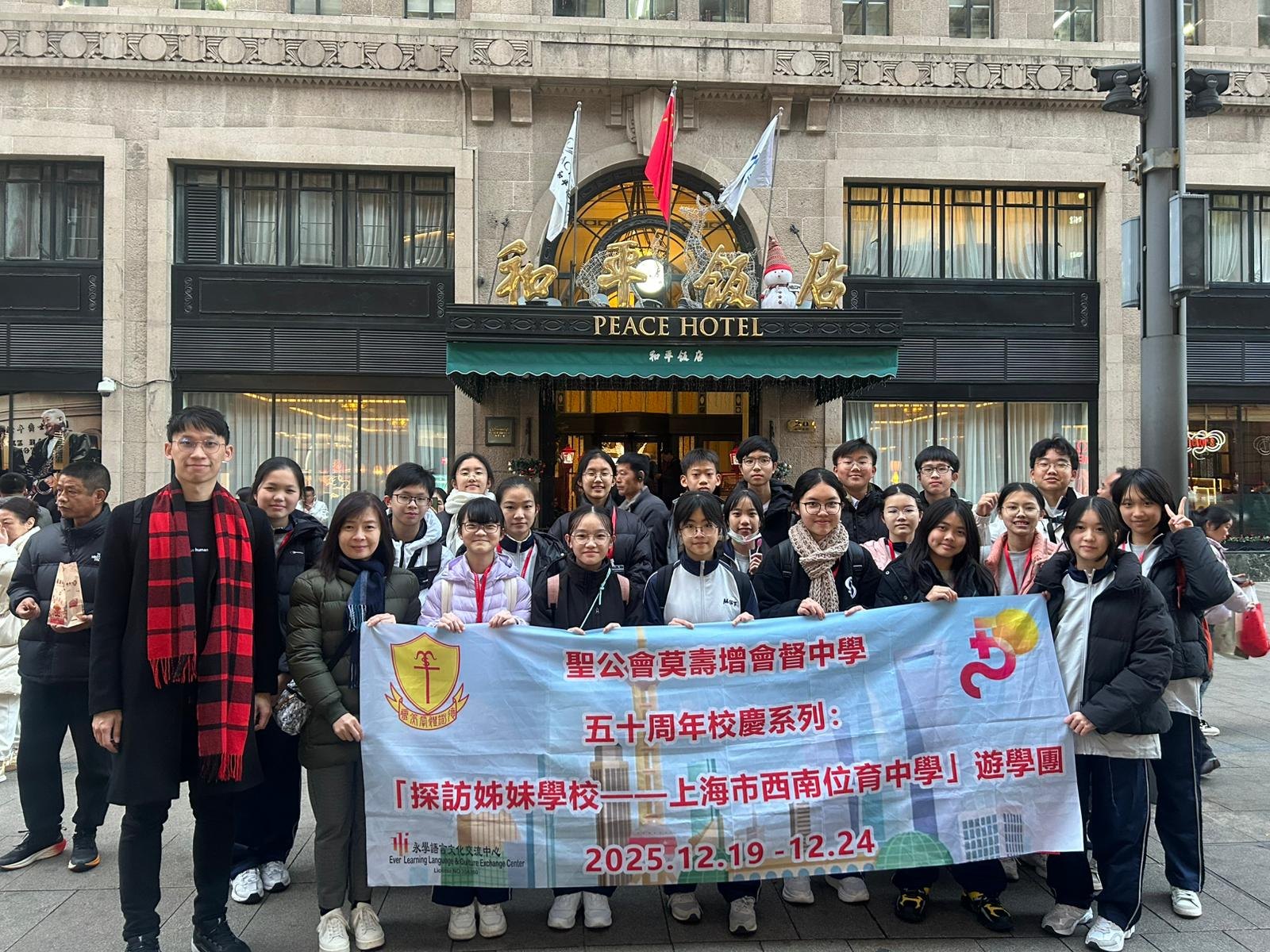 To celebrate our school's 50th anniversary and further deepen the bond with our sister school in the Mainland, the External Affairs Committee successfully organized the "Sister School Visit: Shanghai Southwest Weiyu Middle School Study Tour" from December 19 to 24, 2025. Led by Principal Ms.Wong Lee Lee and Mr. Lau Wai Yip, a delegation of twenty Secondary 2 and 3 students embarked on a six-day immersive learning journey in Shanghai.