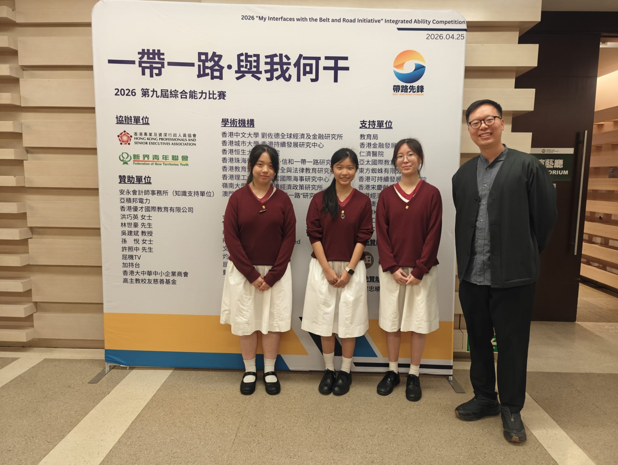 Our students, 5B WONG E LANE, 5B YEUNG WING YEE, and 5D WONG HOI KI, participated in the 9th "My Interfaces with the Belt and Road Initiative" Integrated Abilities Competition on April 25, 2026, and successfully attained the 2nd Class (B&R) Award in the Secondary School Category. Prior to the event, the students attended preparatory seminars conducted by distinguished experts, including Mr. Nicholas Ho, Commissioner for Belt and Road.