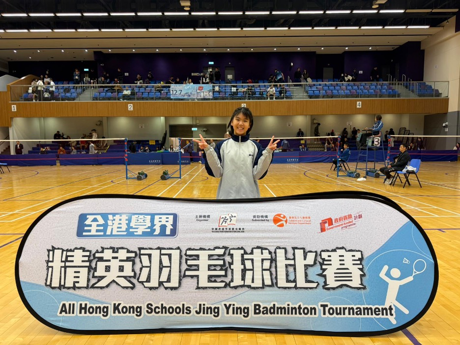 恭喜本校羽毛球隊員1A 李敏頤同學於2025-2026年度全港學界精英羽毛球比賽 (中學組女子單打) 在216名參加者中打入最後16強,為學校參加精英賽以來女子單打最佳成績!