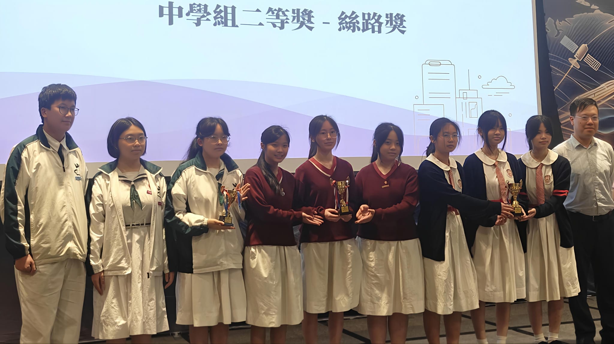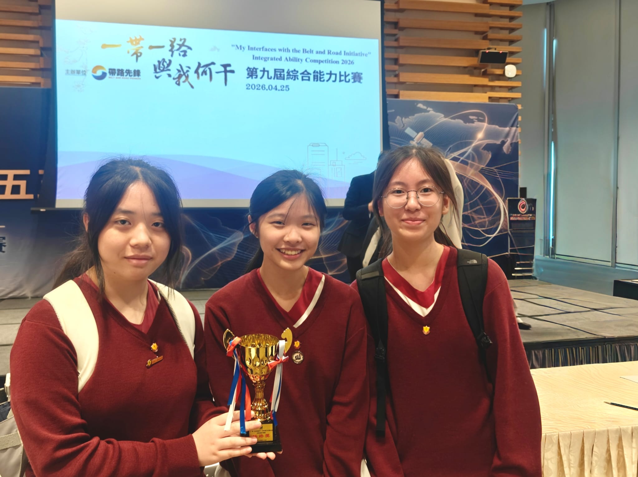 Our students, 5B WONG E LANE, 5B YEUNG WING YEE, and 5D WONG HOI KI, participated in the 9th "My Interfaces with the Belt and Road Initiative" Integrated Abilities Competition on April 25, 2026, and successfully attained the 2nd Class (B&R) Award in the Secondary School Category. Prior to the event, the students attended preparatory seminars conducted by distinguished experts, including Mr. Nicholas Ho, Commissioner for Belt and Road.